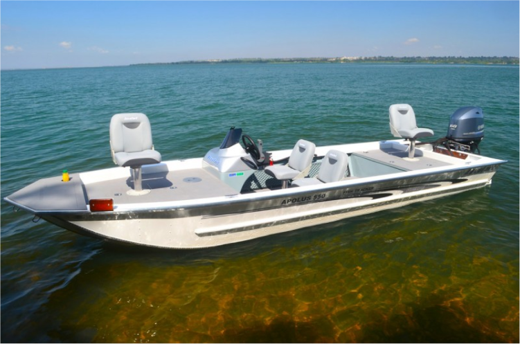 O Apolus TR CLX traz um casco semi‑V de excelente estabilidade e pode receber motores de 40 a 50 HP. A versão CLX inclui duas plataformas (proa e popa), duas poltronas giratórias para piloto e copiloto, além de duas poltronas flip-up na popa. Conta com tanque de combustível de 70 L na proa, suporte de âncora com carretel, suportes para motor elétrico, baús porta-objetos, compartimentos para bateria, e viveiro integrado, tornando o barco versátil para pesca e momentos de lazer.